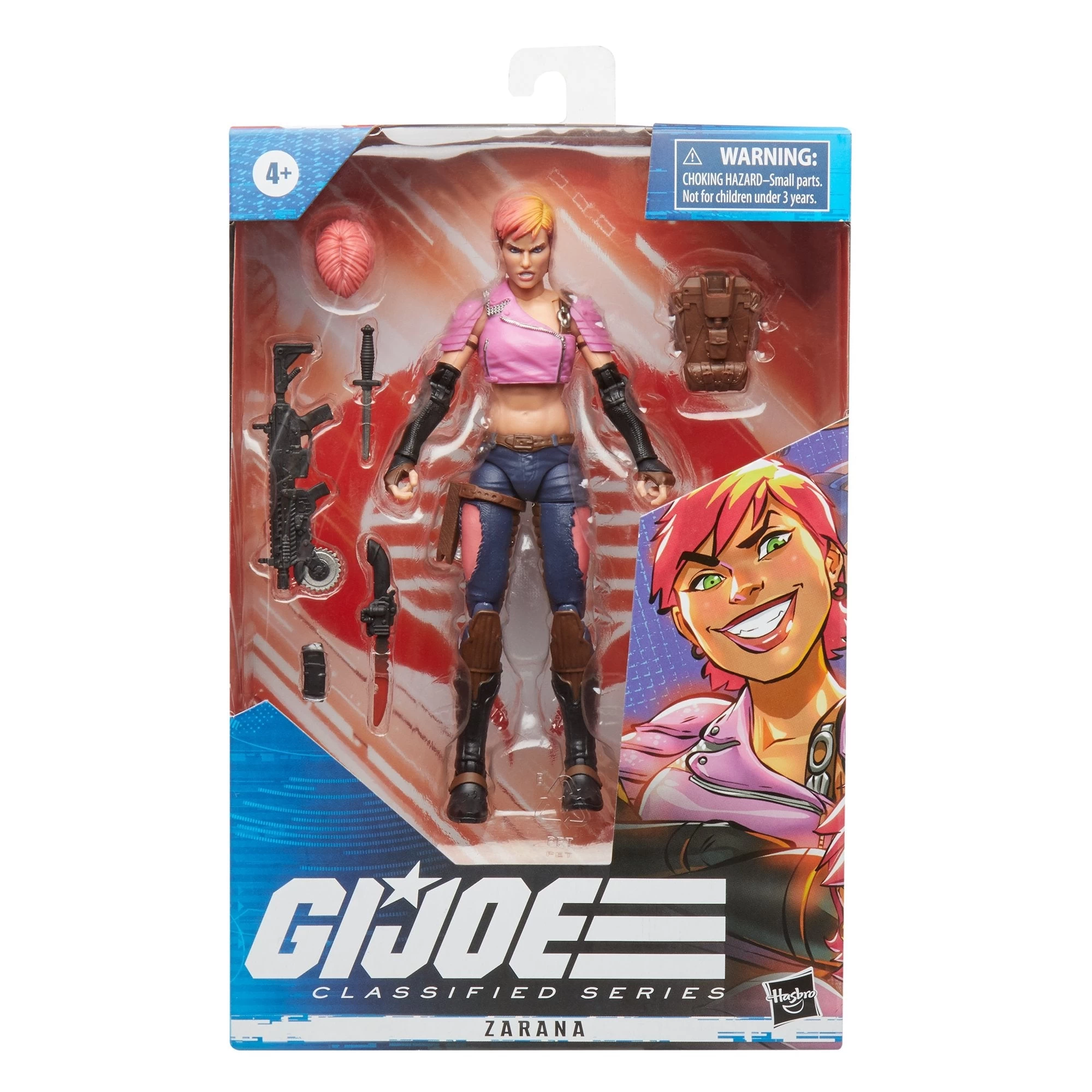 This Zarana figure comes ready for action, with multiple points of articulation for high poseability and 6 character-inspired accessories. And with custom artwork by Marcus Williams, the G.I. Joe Classified Series Zarana package will make a mark on shelves.