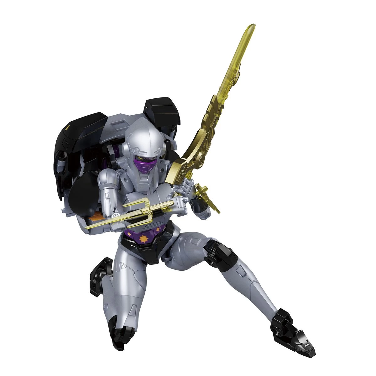 Nightbird Shadow transforms from a car to a ninja type robot. Since it is a fully articulated figure, you can freely take the poses that were active in the animation.Â